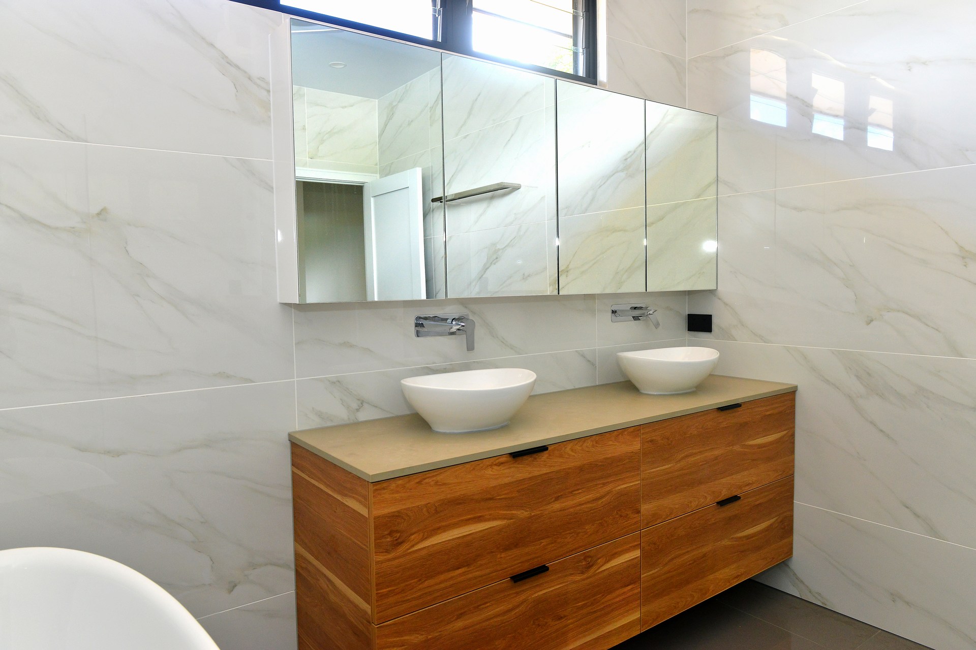 Warm toned assents in timber and stone appear throughout, complementing the two beautiful bathrooms and master ensuite.”